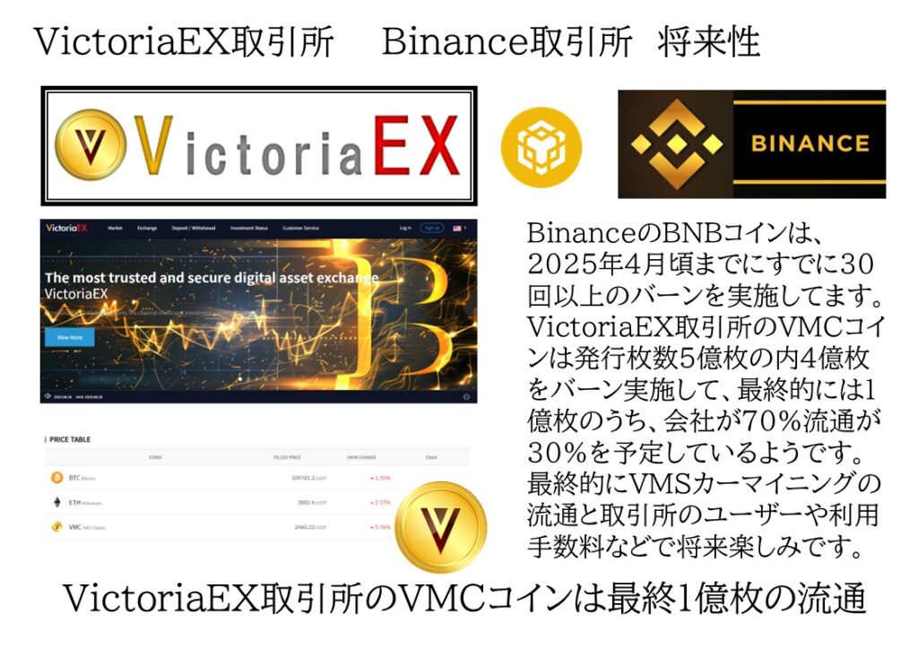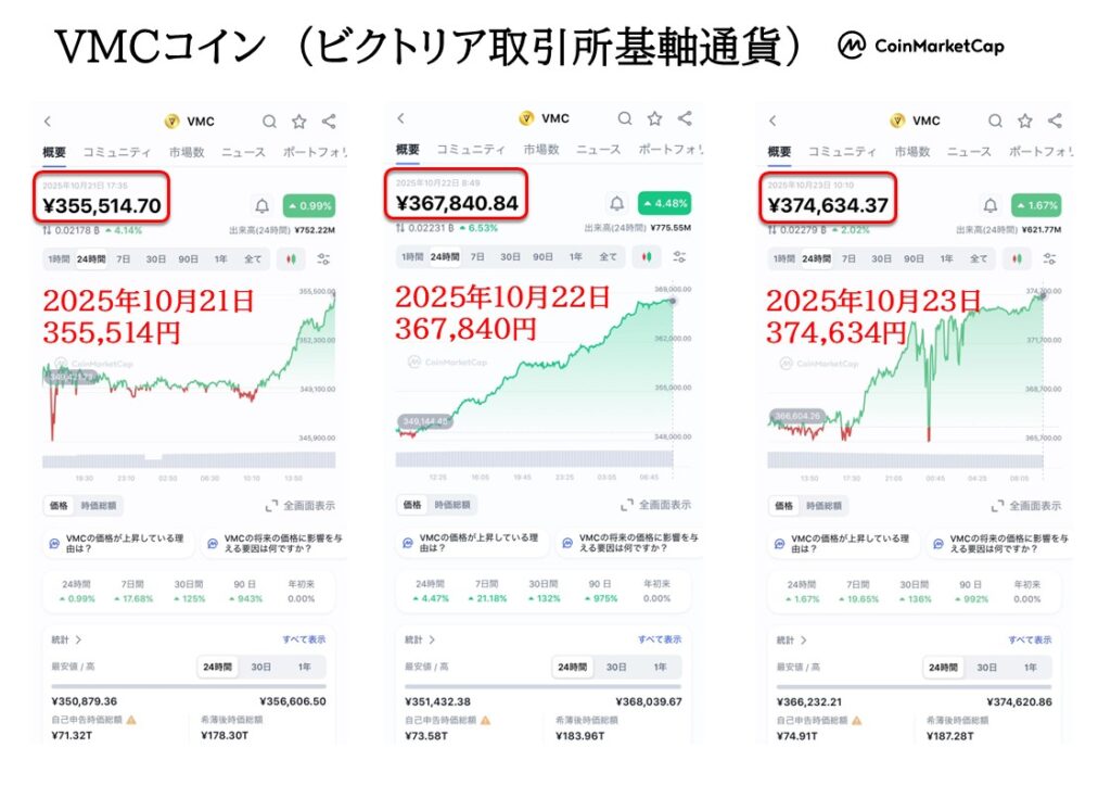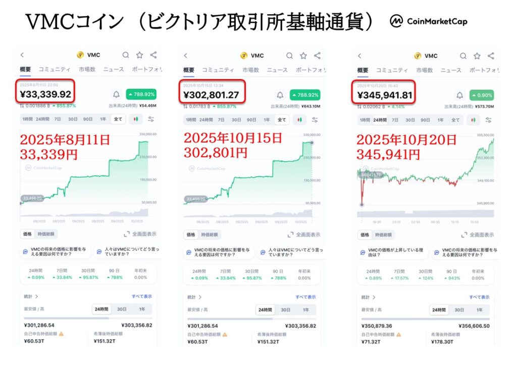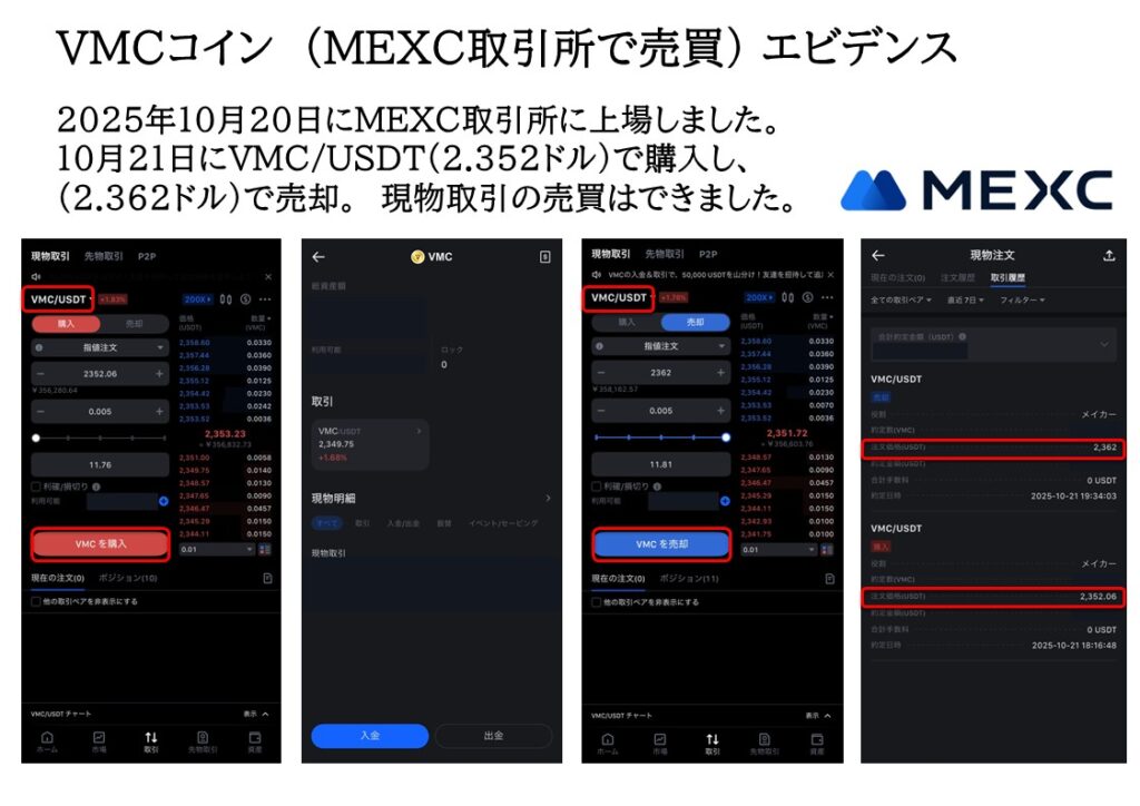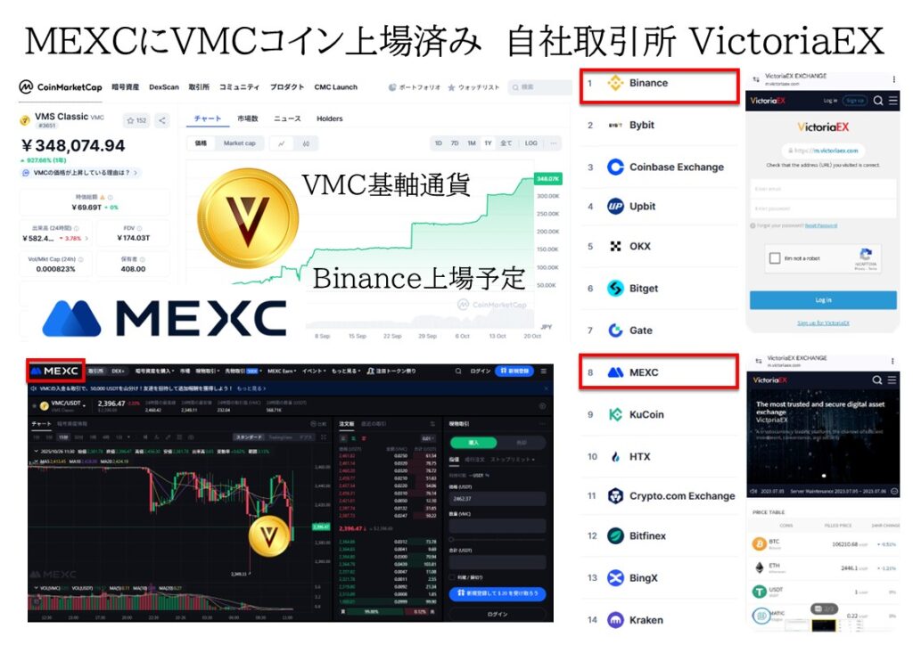 ・VMSJAPAN代理店は(ビクトリア取引所基軸通貨)VMCコイン上場済みを加盟金同等の枚数を特典で受け取ることができます。(2025年10月20日MEXC取引所に上場した単価の枚数)