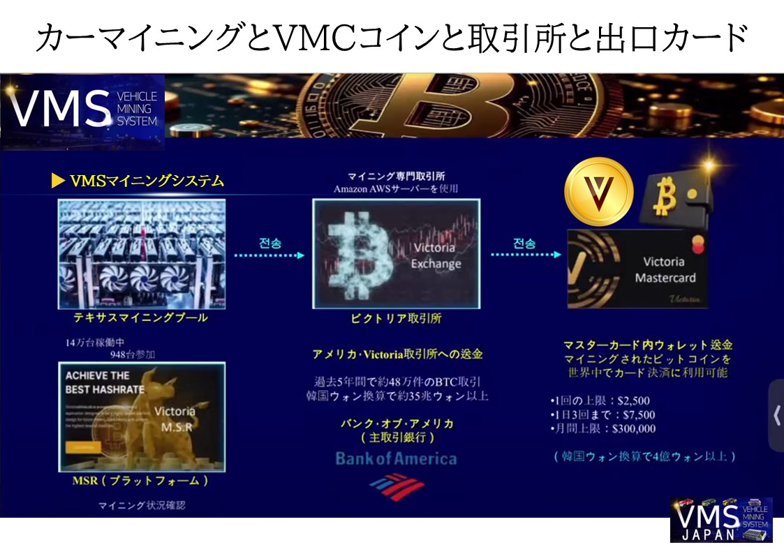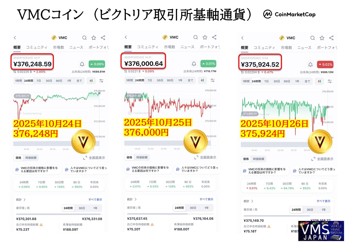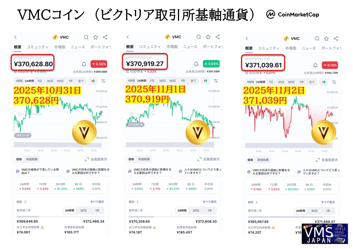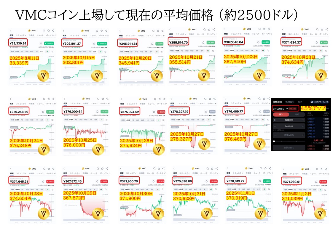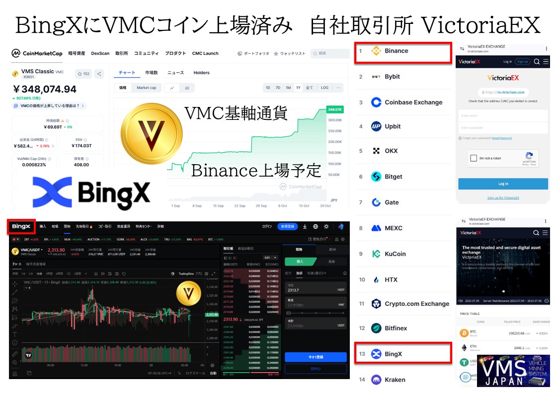 VMCコインの価値を上げ続ける カーマイニングとは? VMSJAPANカーマイニングイメージPV(1:11) 〜VMCコイン期間限定応援キャンペーン〜 取引所に上場している VMCコインをお得に貰っちゃおう♪ 今なら「無料エアードロップ」貰えます! 日本市場展開する前に海外で 盛り上がっているVMCコインの 軸となる特許取得内容をご確認ください 特許第 7743164 号 車両用暗号通貨採掘システム 発明者 パク ガラム 2023-573374 出願日2022年1月28日 登録日2025年9月12日 発行日2025年9月24日 特許情報プラットフォーム|J-PlatPat [JPP] https://www.j-platpat.inpit.go.jp/ 検索 2023-573374 【VMSのNFT応援企画】 今からVMSをNFTにして 流通していきます。 先行モニターとしてVMSの NFTモニター参加者には、 VMC1枚を 無料エアードロッププレゼントします!! VMSとは? VMCコインとは? こちらをご覧ください。 VMS-NFT応援団として参加する場合、 加盟登録代金として 1000ドルまたは 150,000円をお支払いください。 ※1000ドルまたは150,000円は、 VMS-NFT応援団加盟登録費としてお支払いすると 特典としてVMC1枚を 無料エアードロッププレゼントします!! ご理解できるかたのみご参加ください。 【VMS-NFT応援団として参加する】 無料エアードロップで貰った (VMCコイン売買条件)をお伝えします。 バイナンス取引所上場後に月間5%~10%だけ 利確(売却)するという条件になります。 または、VMS-NFTが完成した時に、 NFTとして利用可能です。 ステーキングするとメリットあります。 ※バイナンス取引所上場 2025年12月または2026年早期予定 専用アカウントを開設していただき、 そこにVMCを付与します。 1枚以上欲しい方は個別相談とします。 【VMCコインの発行元及び会社】 VMSコリア株式会社 本社見学動画(1:00) 2025年11月11日からマイニングカフェも オープンして後々VMCコインも使えるようになり、 120室のホテルも買収してマイニングホテルや、 キャンピングカーマイニングや、 色々なところでVMCコインが使えるようにします。 日本ではVMS-NFT流通でVMCも使えるようにします。 今のお得なエアードロップの時に、 ご参加いただけますと幸いです。 今回の企画は日本で事業展開するときに、 多くの方に1枚だけでもVMCを 持っていただき、共に長期的に、 事業とVMCの価値を上げていただき、 5億枚から4億枚無くした、 最終の1億枚になった時1枚の価値と価格で 幸せを感じていただきたいと思います。 1000ドルまたは、150,000円加盟金で、 2500ドル相当が60%OFFですね♪ VMC1枚を無料エアードロップで お得に参加して応援団としてご協力お願いします。 【VMS-NFT応援団として参加する】 VMS-NFT応援団に参加して 1VMCを特典で受け取る方はこちら 【VMS-NFT応援団として参加する】 VMSコリア株式会社と協力体制で、 【公式】VMSJAPANが独占募集いたします。 すでにオフィスがある方、 すでに営業部で販売環境がある方、 今から新規事業部を考えている方、 VMS事業またはVMS-NFTに興味がある方は 個別でご相談お願いします。 秘密保持契約を締結後に、内容をお伝えし、 業務委託契約で優遇した条件を提案いたします。 追伸 法人の方で利益を得ている場合、 節税や経費対策を考えている方にも メリットがあるお話しです。 他社の事例を参考にお伝えします。 【公式】VMSJAPAN LINE